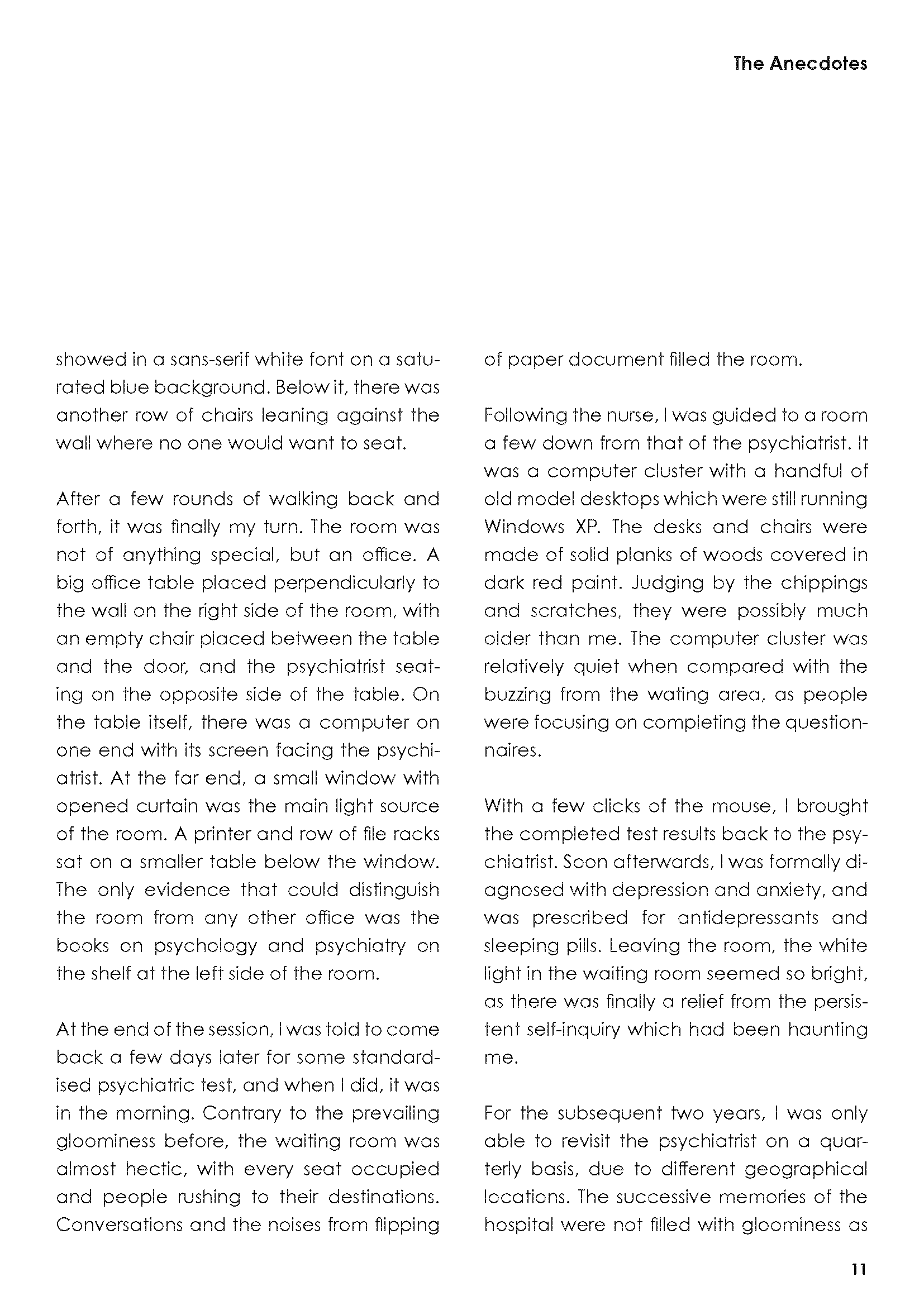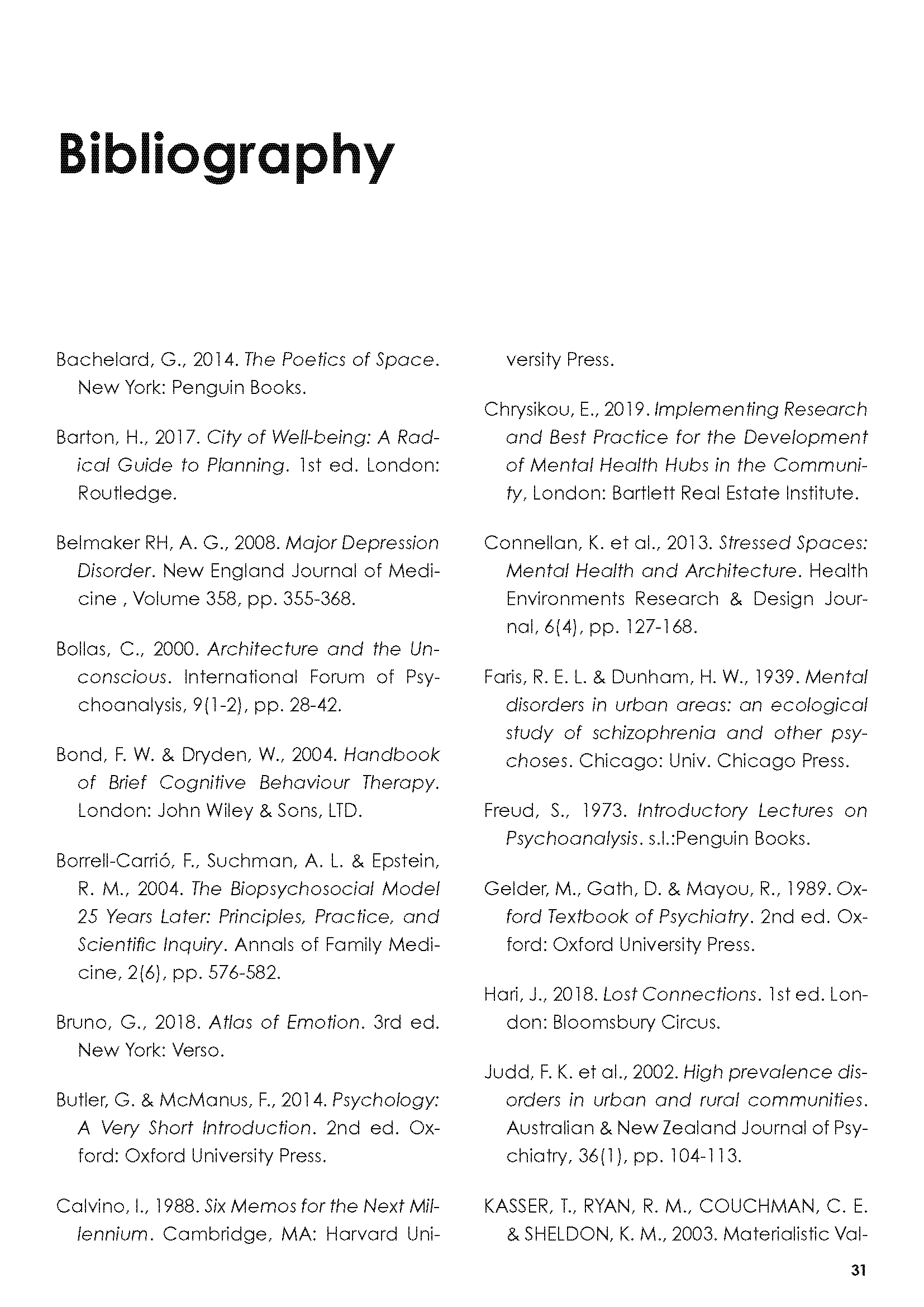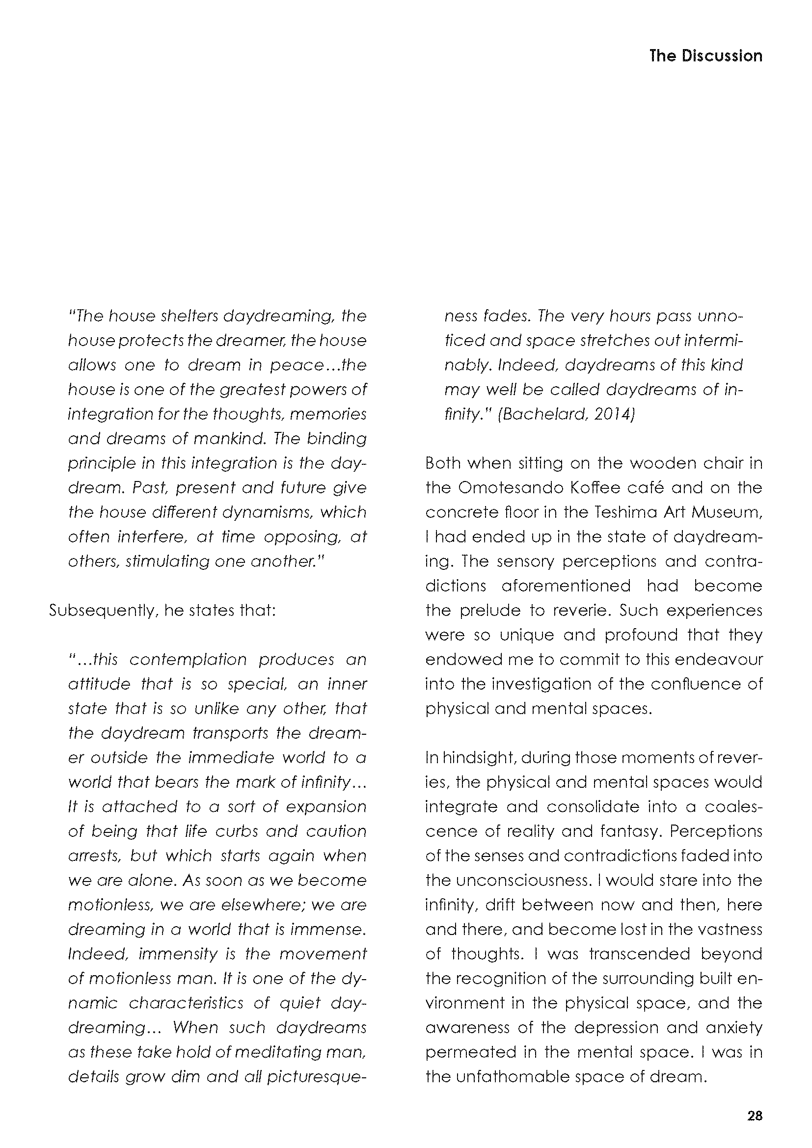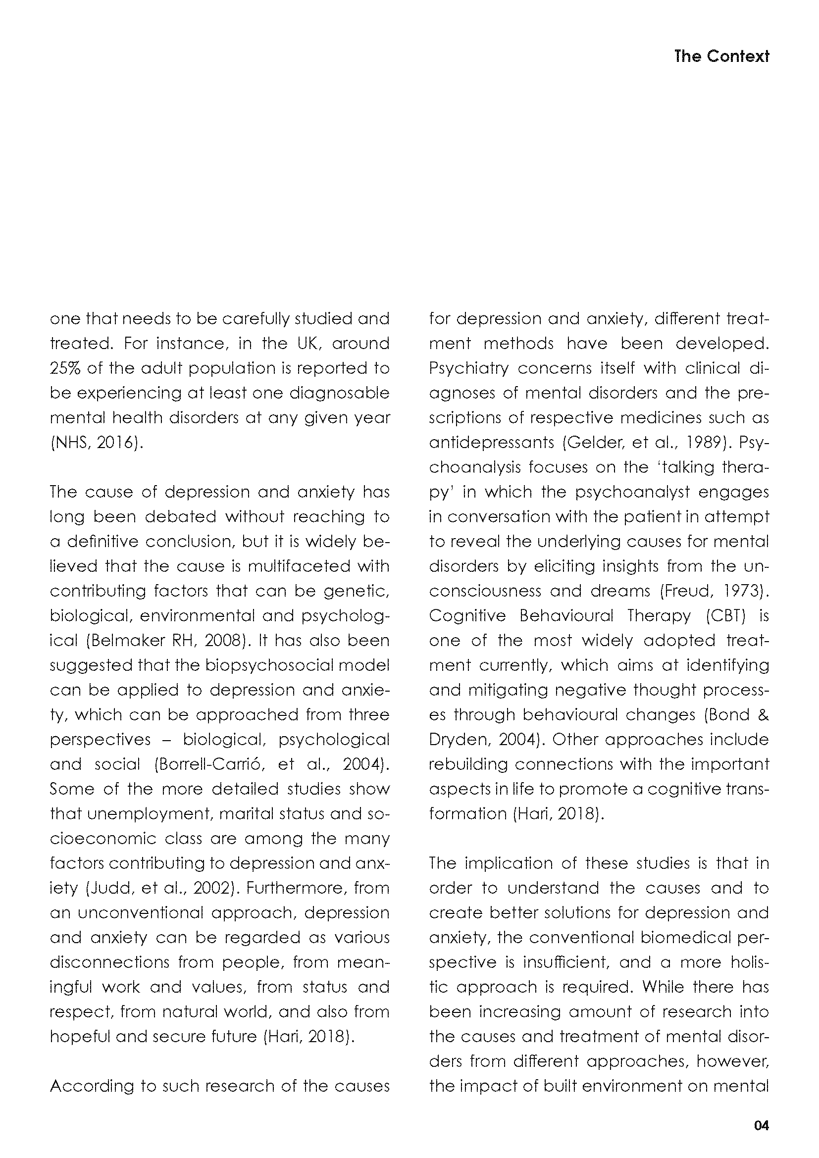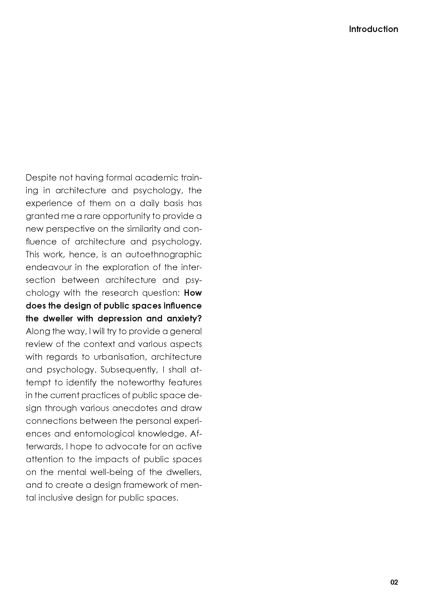 In the dissertation, I investigated the relationship between physical, mental and dream spaces, and attempted to utilise such interactions in order to inform better designs for mental wellbeing.
